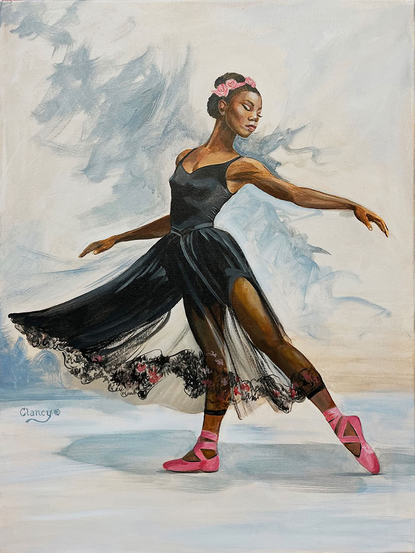 Title: Gracefully She Moves, Media: Acrylic on Canvas, “Petals and Grace” Collection, Size: 18” x 24”