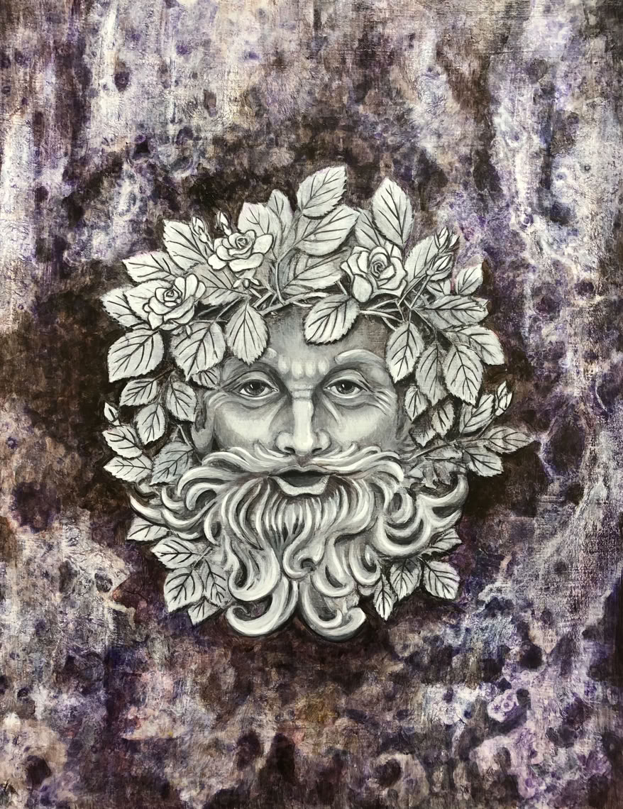 Title: King of the Roses, Media: Acrylic on Canvas, “Whispers in Stone” Collection, Size: 16” x 20”