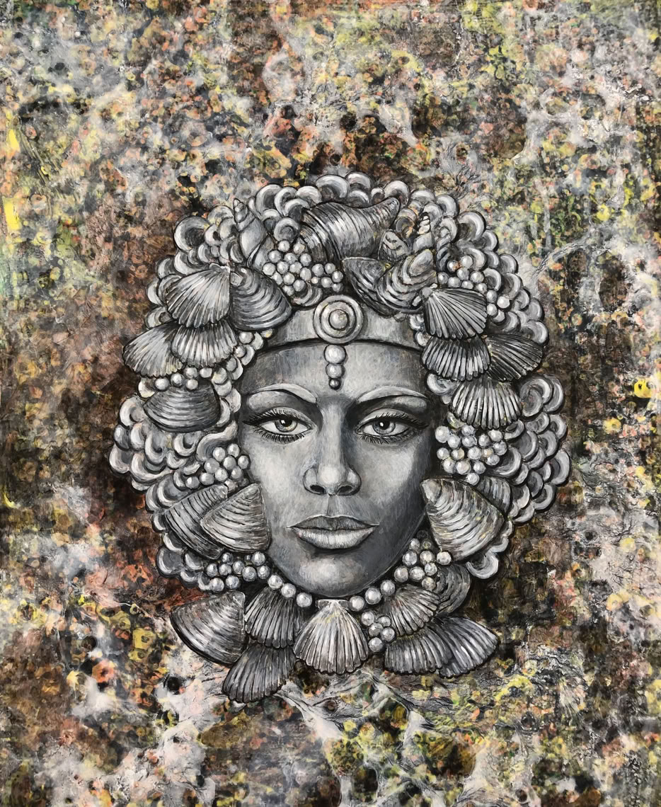 Title: The Siren of the Mediterranean Media: Acrylic on Canvas, “Whispers in Stone” Collection, Size: 16” x 20”