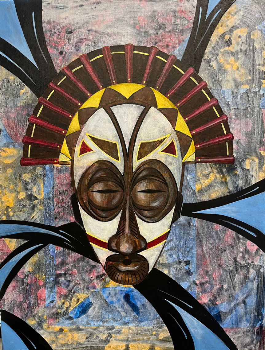 Title: Ivory Coast Warrior: Acrylic on Canvas, “Shaman Vibes” Collection, Size: 18” x 24”