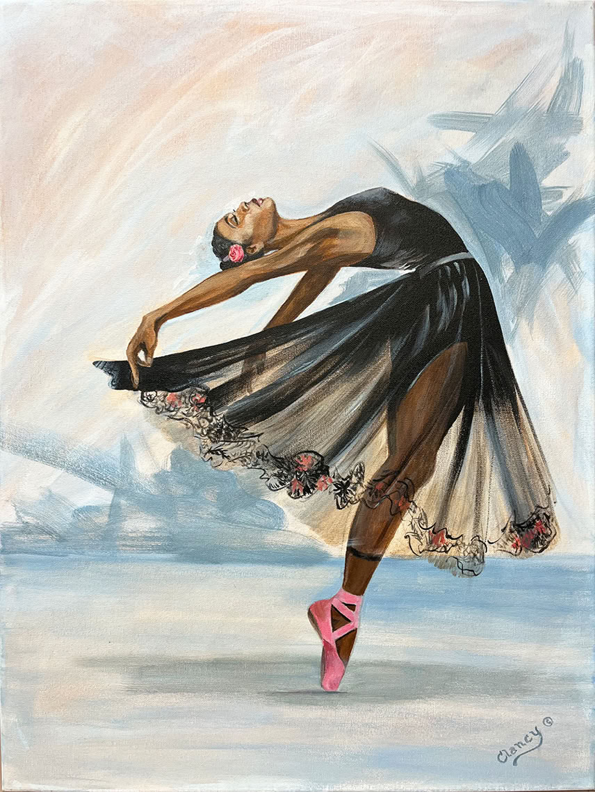 Title: The Dance Goes On, Media: Acrylic on Canvas, “Petals and Grace” Collection, Size: 18” x 24”