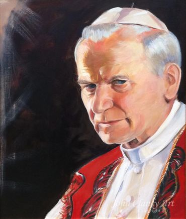 There are many portrait artist online today that make a photocopy transfer of your photo on canvas or paper and digitally retouch your photo adding Photoshop effects instead of actually painting it. This is a way of producing a quickly made inexpensive portrait representation. This type of portrait is done by pushing a button on the computer to add and simulate art brushstrokes. It is not the same as a portrait painted by hand from either a photo or from an actual sitting with the model. Painting a portrait by hand and eye is a refined skill which takes decades to develop and learn. It is a time consuming process from the beginning to the completion of the final finished work. Unfortunately this is why John cannot compete on pricing against computer generated art. John produces a portrait the same way as that of portraits that you would find in a museum or fine art gallery by the old masters and thus they have greater value. He also does dog and cat portraits (Your Cherished Pet)!
