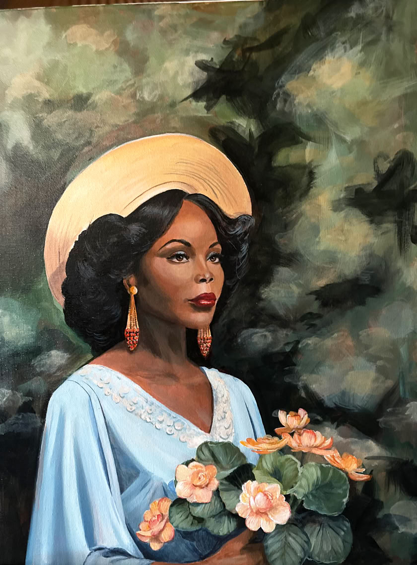 Title: The Yellow Straw Hat, Media: Acrylic on Canvas, “Petal s and Grace” Collection, Size: 18” x 24”